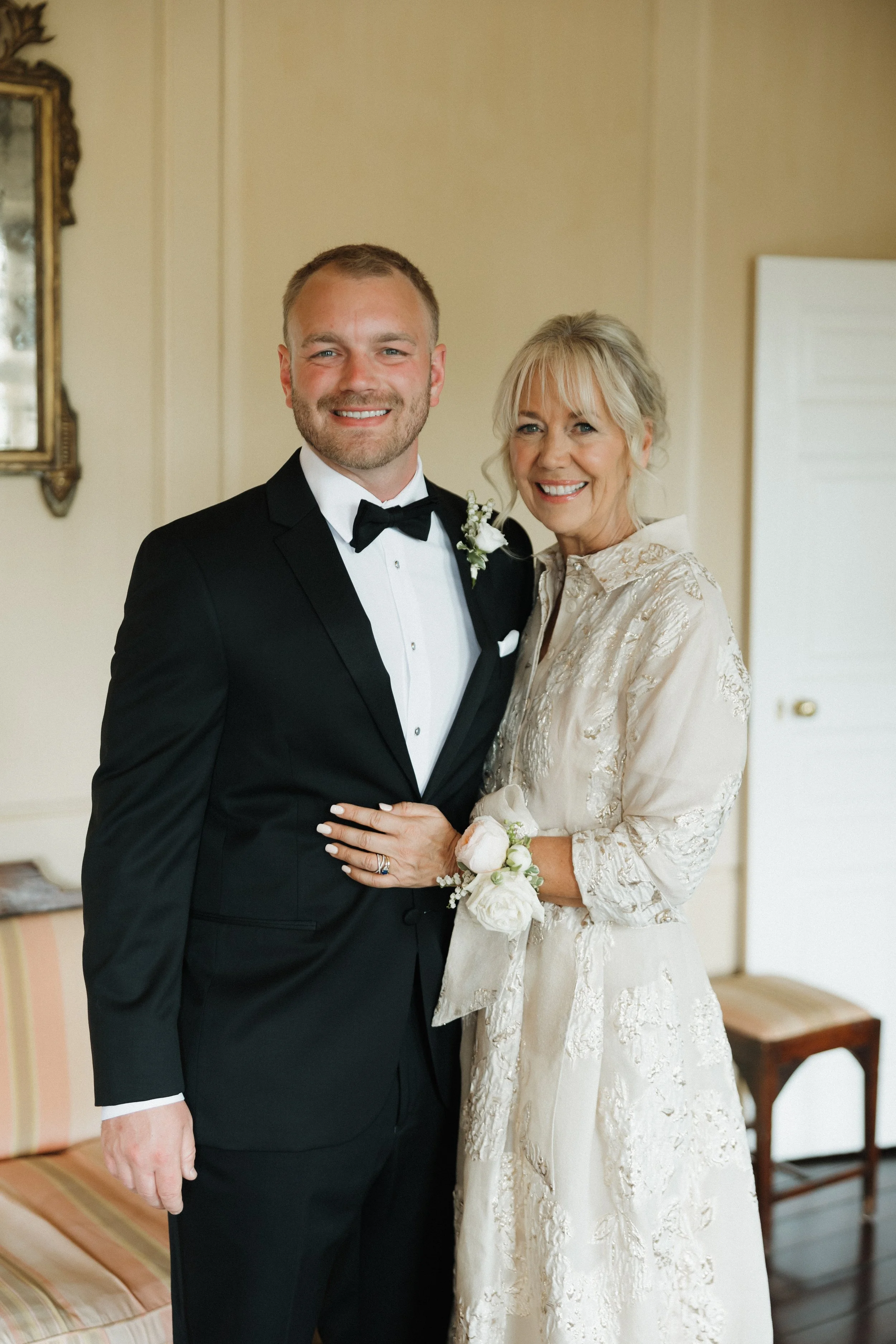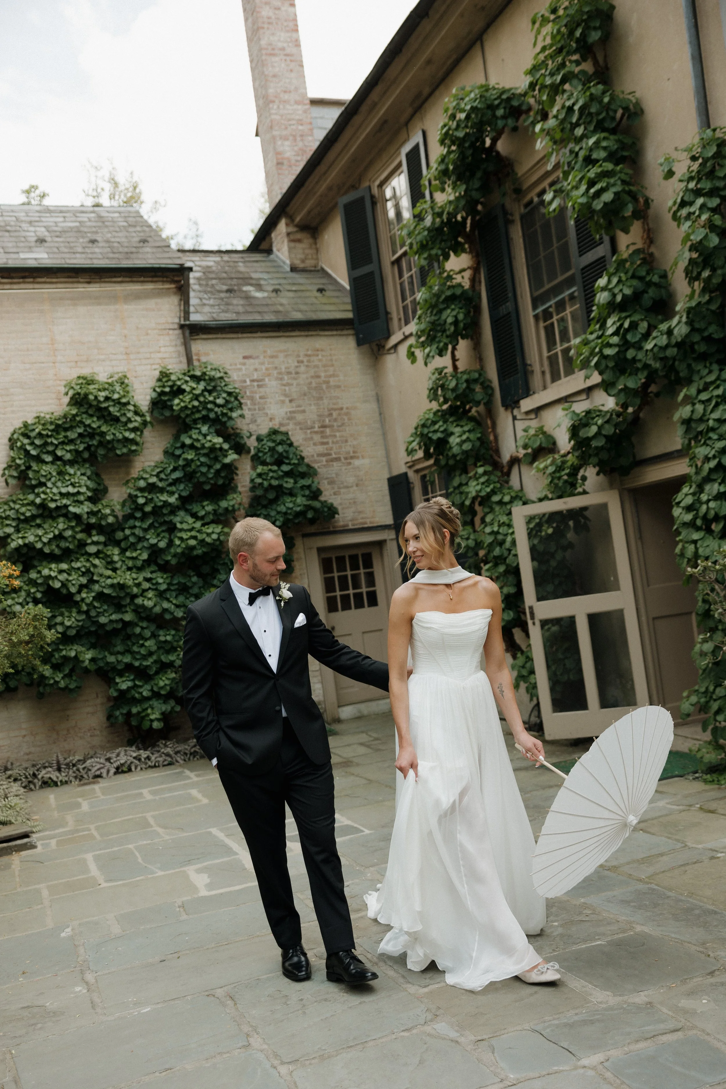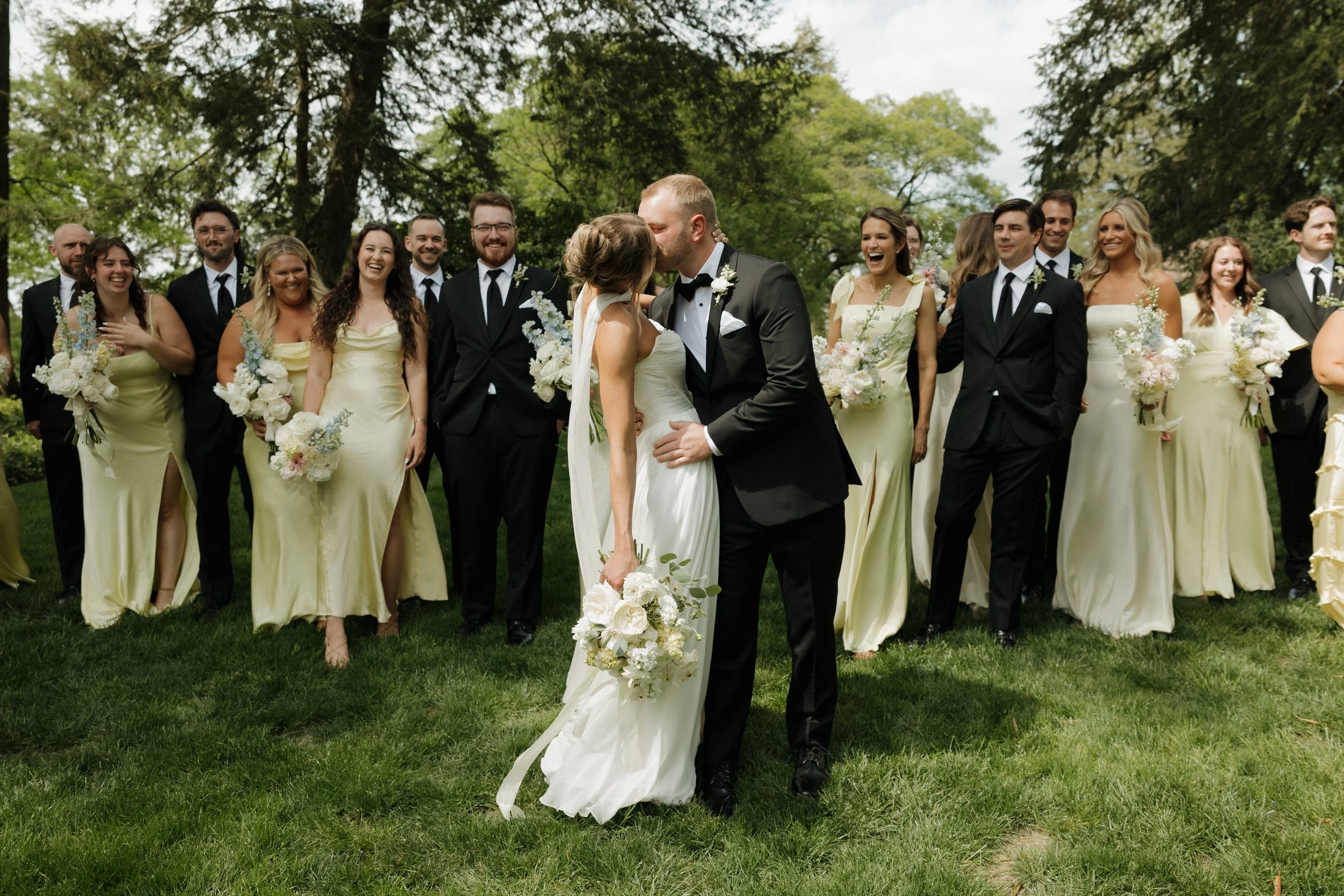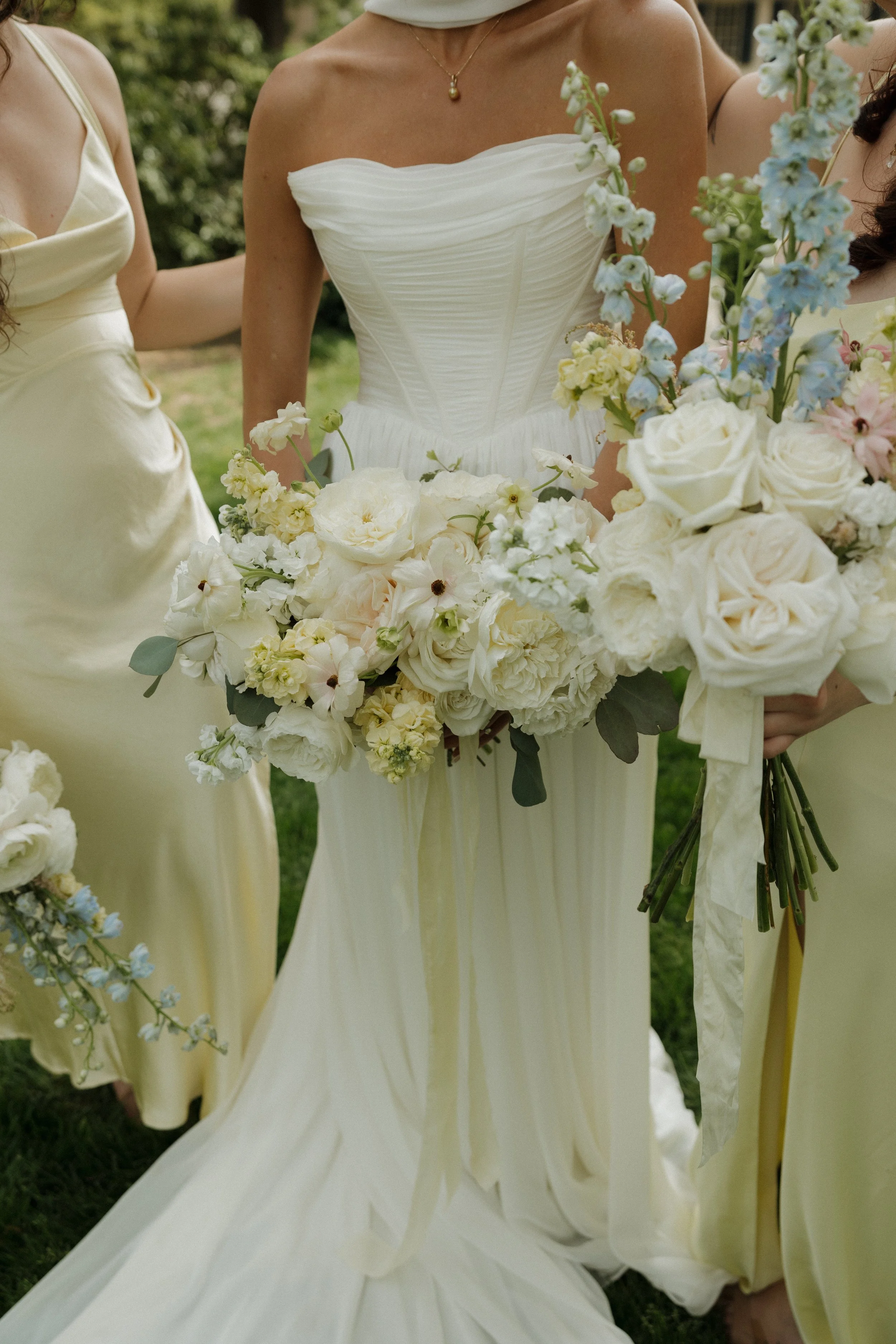 The morning unfolded at the historic Conestoga House & Gardens, where sunlit rooms set a gentle, anticipatory tone. Bridesmaids in butter-yellow dresses wandered the gardens with pastel bouquets in hand. The Bride and Groom walked side by side, calm and present before their vows.