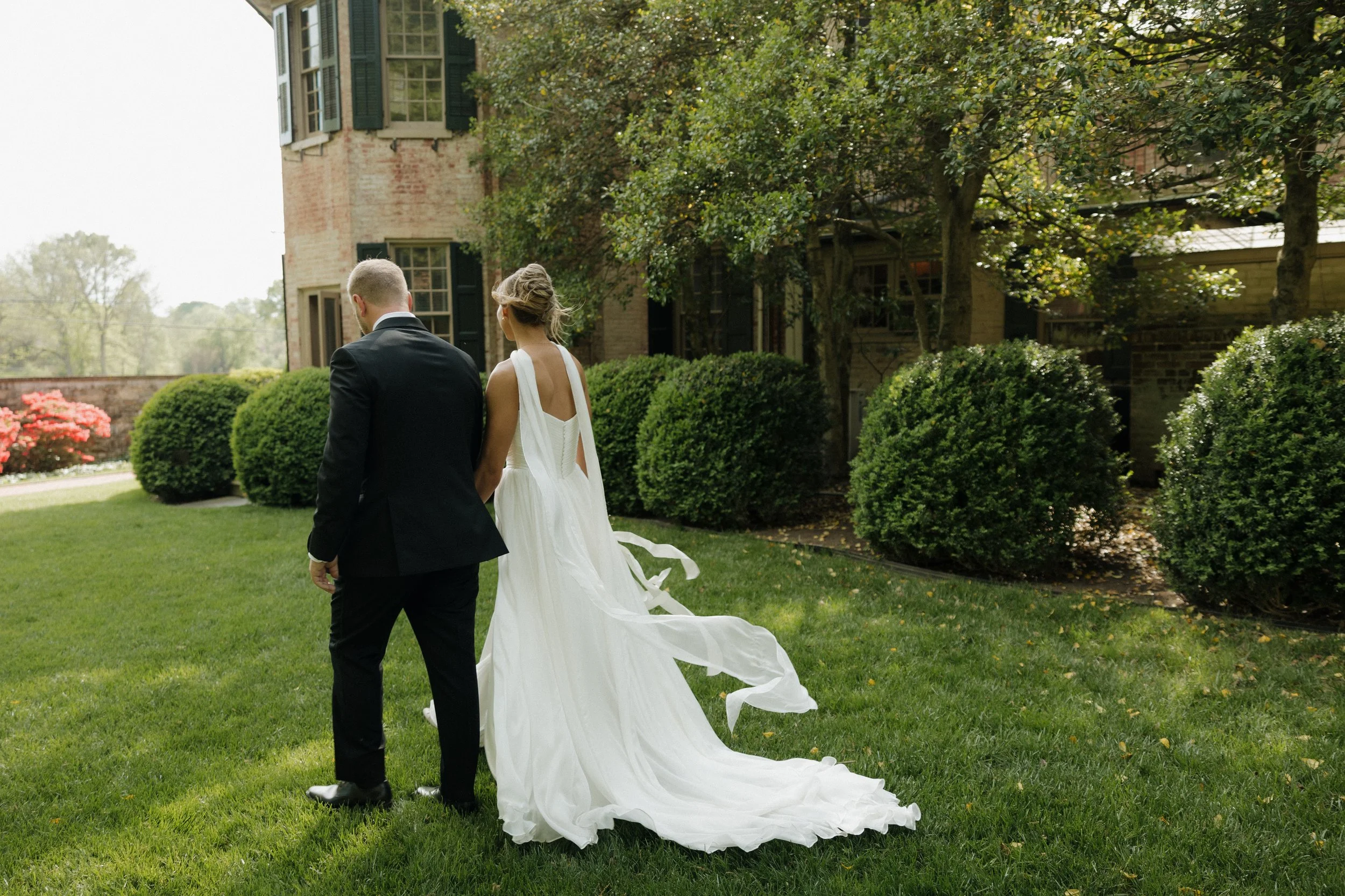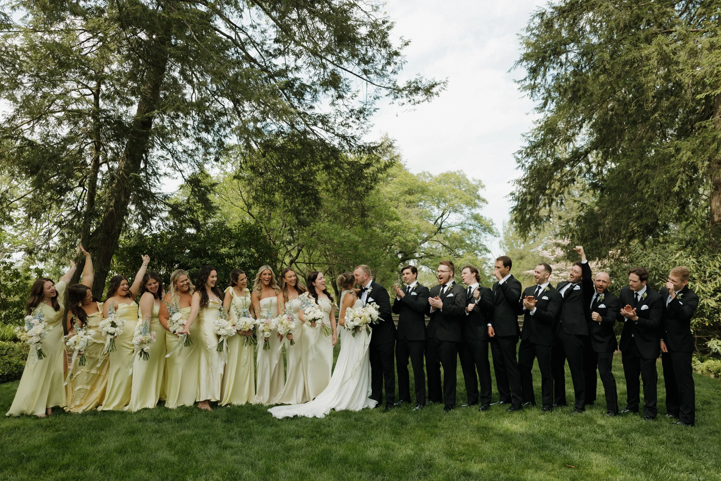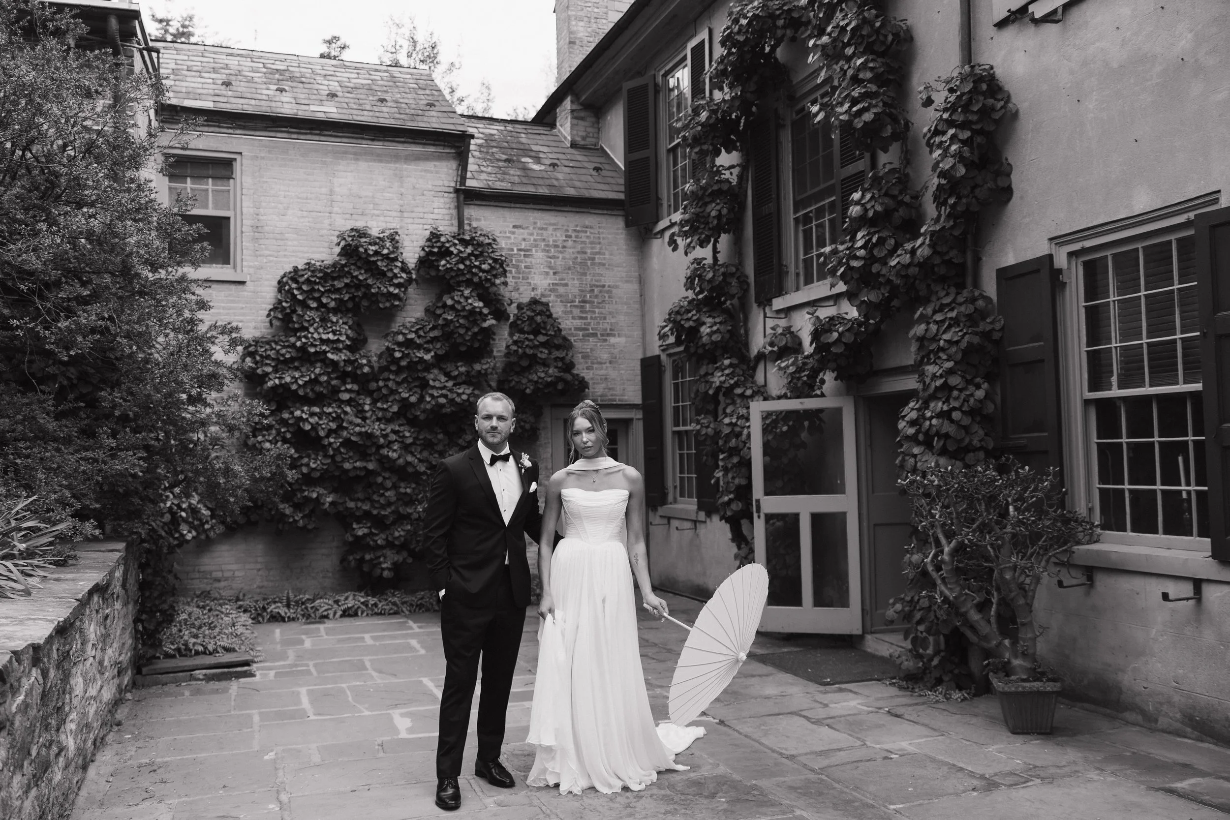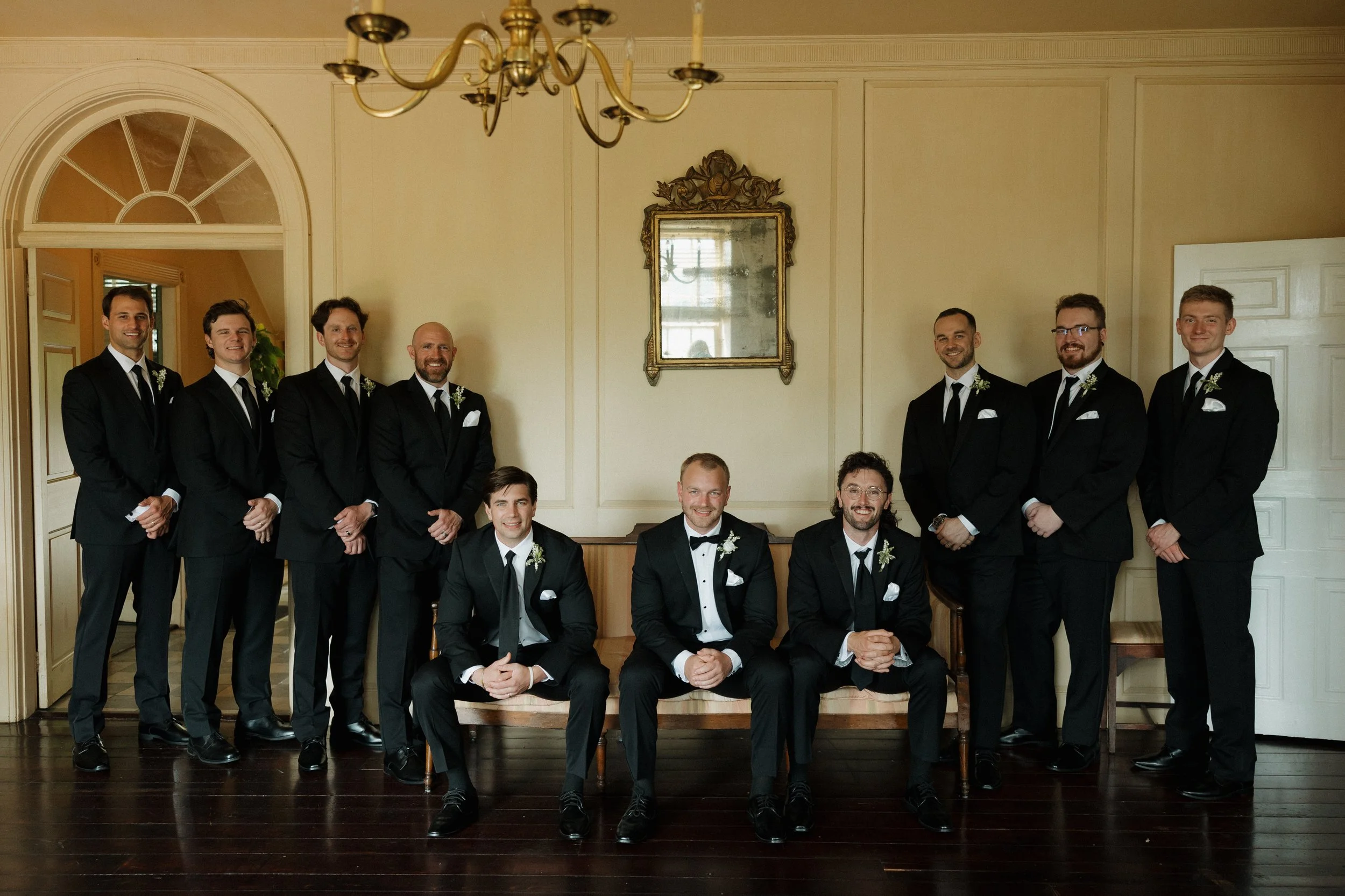 The morning unfolded at the historic Conestoga House & Gardens, where sunlit rooms set a gentle, anticipatory tone. Bridesmaids in butter-yellow dresses wandered the gardens with pastel bouquets in hand. The Bride and Groom walked side by side, calm and present before their vows.