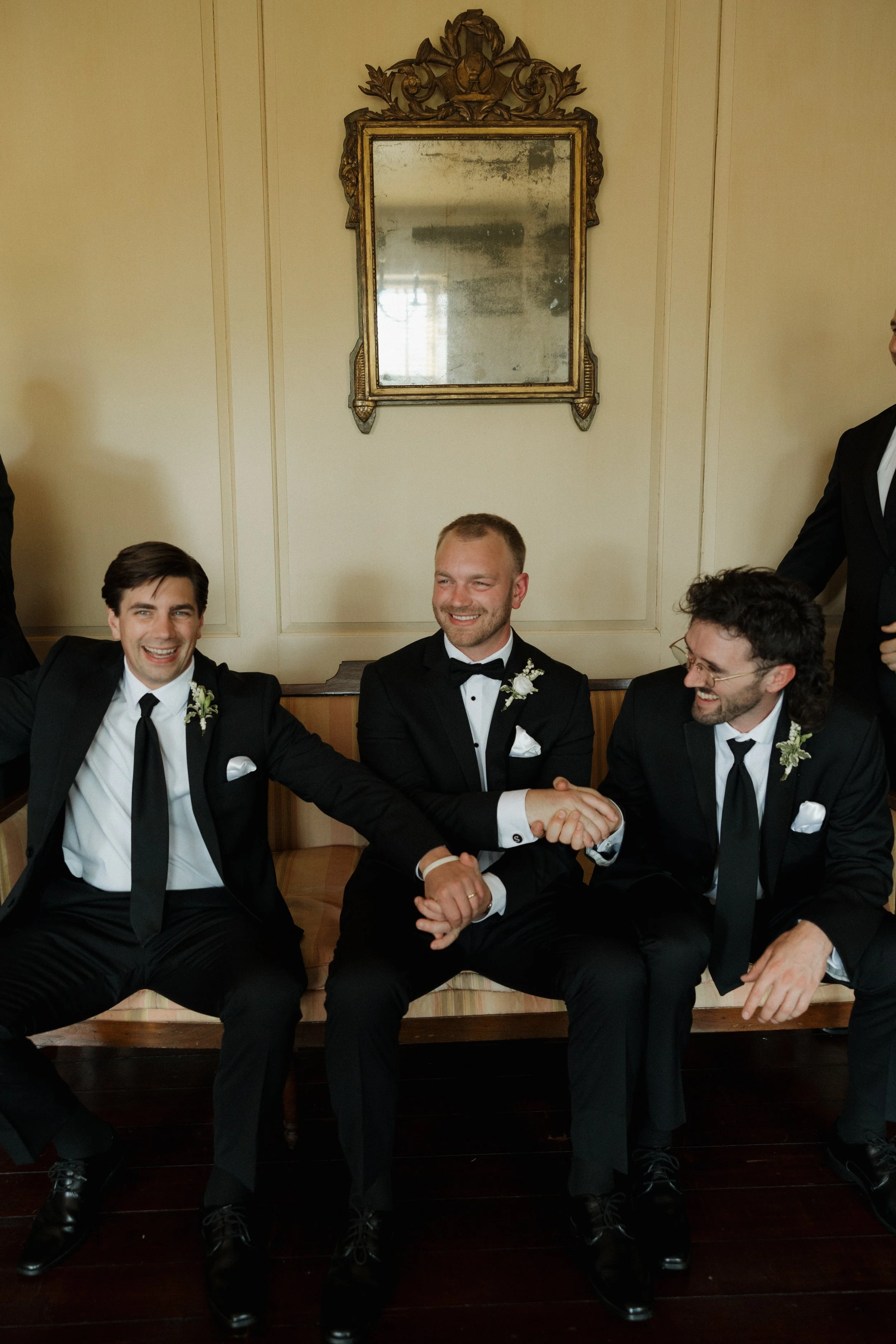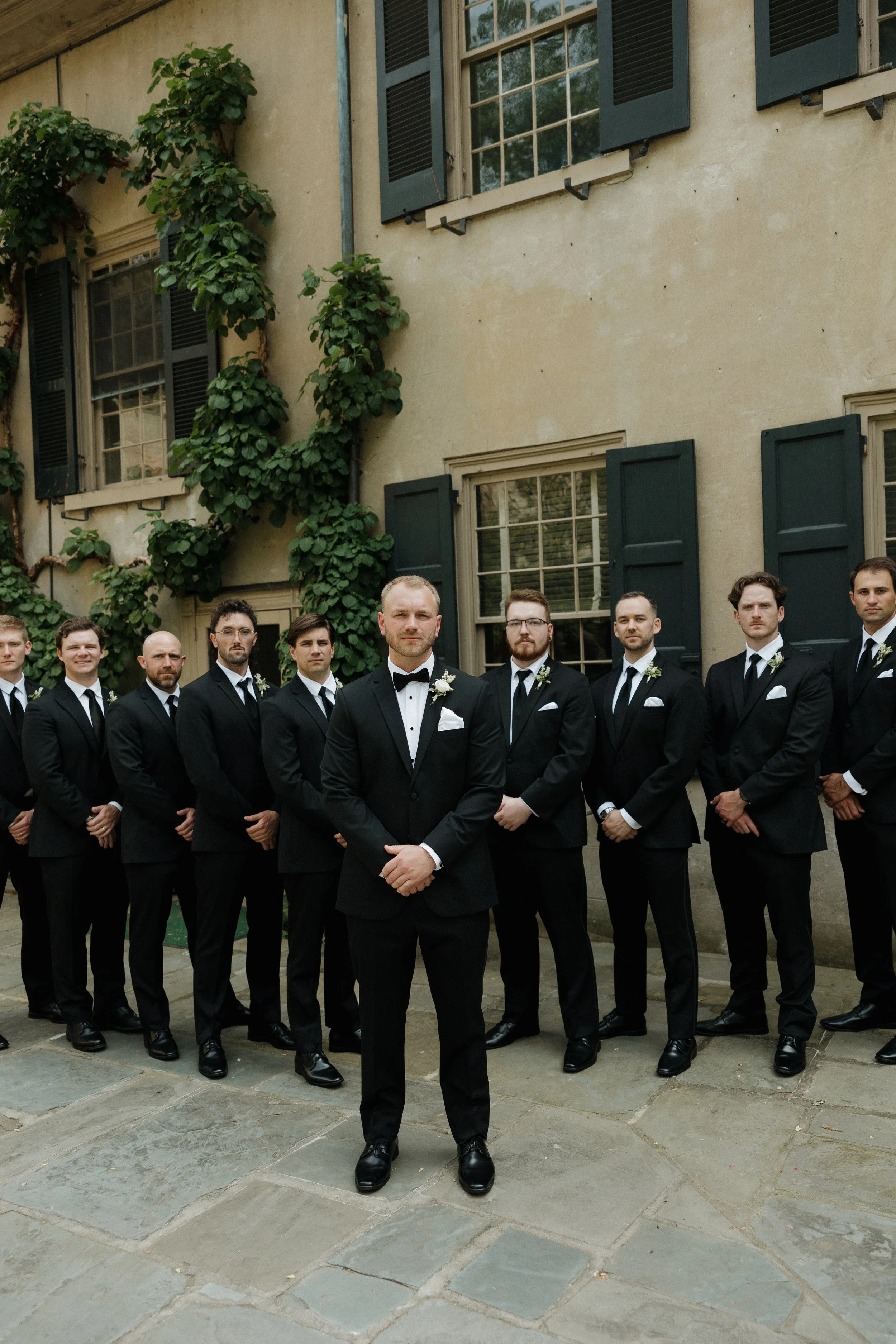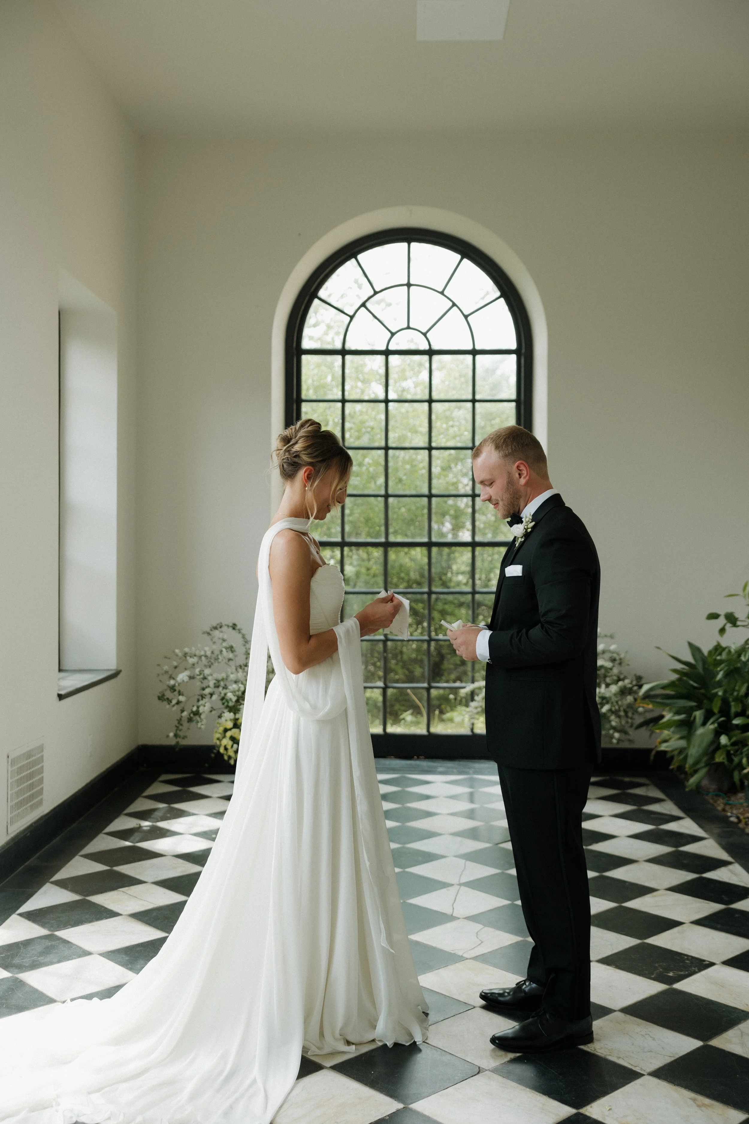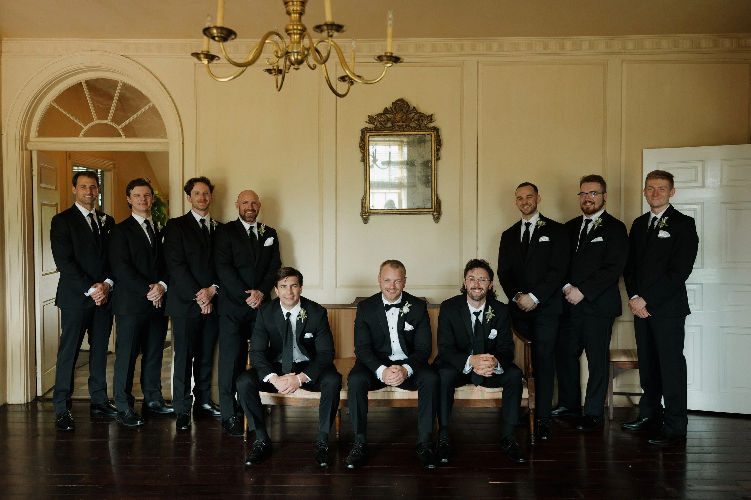 The morning unfolded at the historic Conestoga House & Gardens, where sunlit rooms set a gentle, anticipatory tone. Bridesmaids in butter-yellow dresses wandered the gardens with pastel bouquets in hand. The Bride and Groom walked side by side, calm and present before their vows.